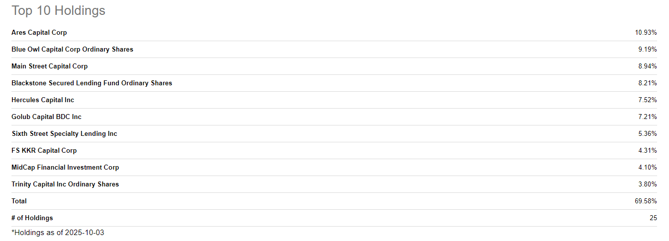 The top 10 holdings represent nearly 70% of the value of the ETF: