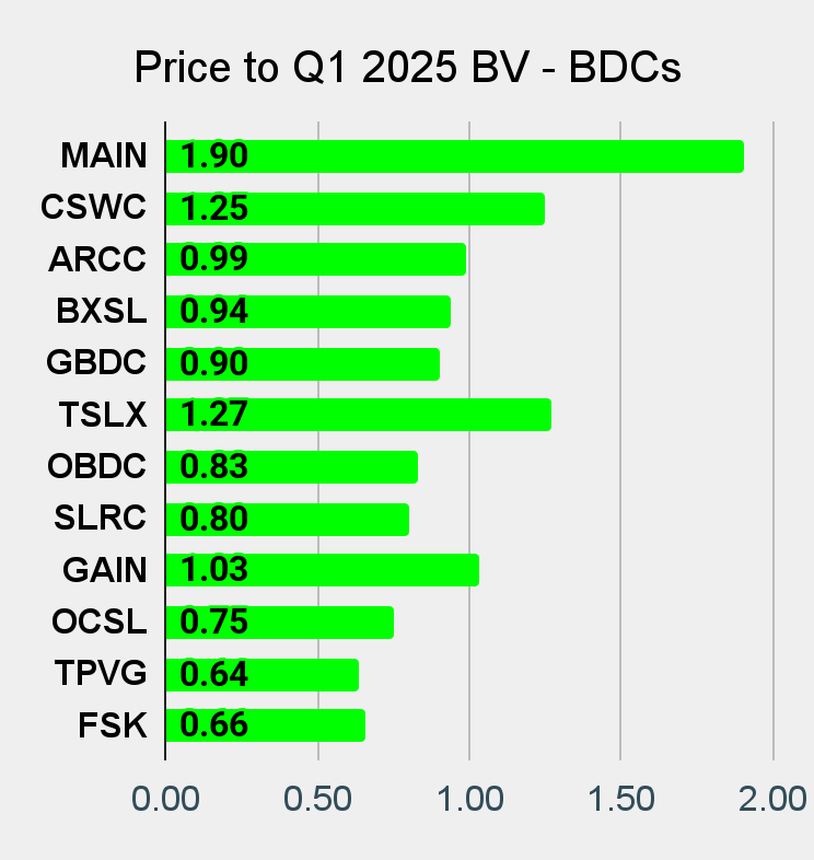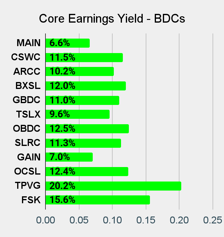 BDCs: (CSWC), (BXSL), (TSLX), (OCSL), (GAIN), (TPVG), (FSK), (MAIN), (ARCC), (GBDC), (OBDC), (SLRC)