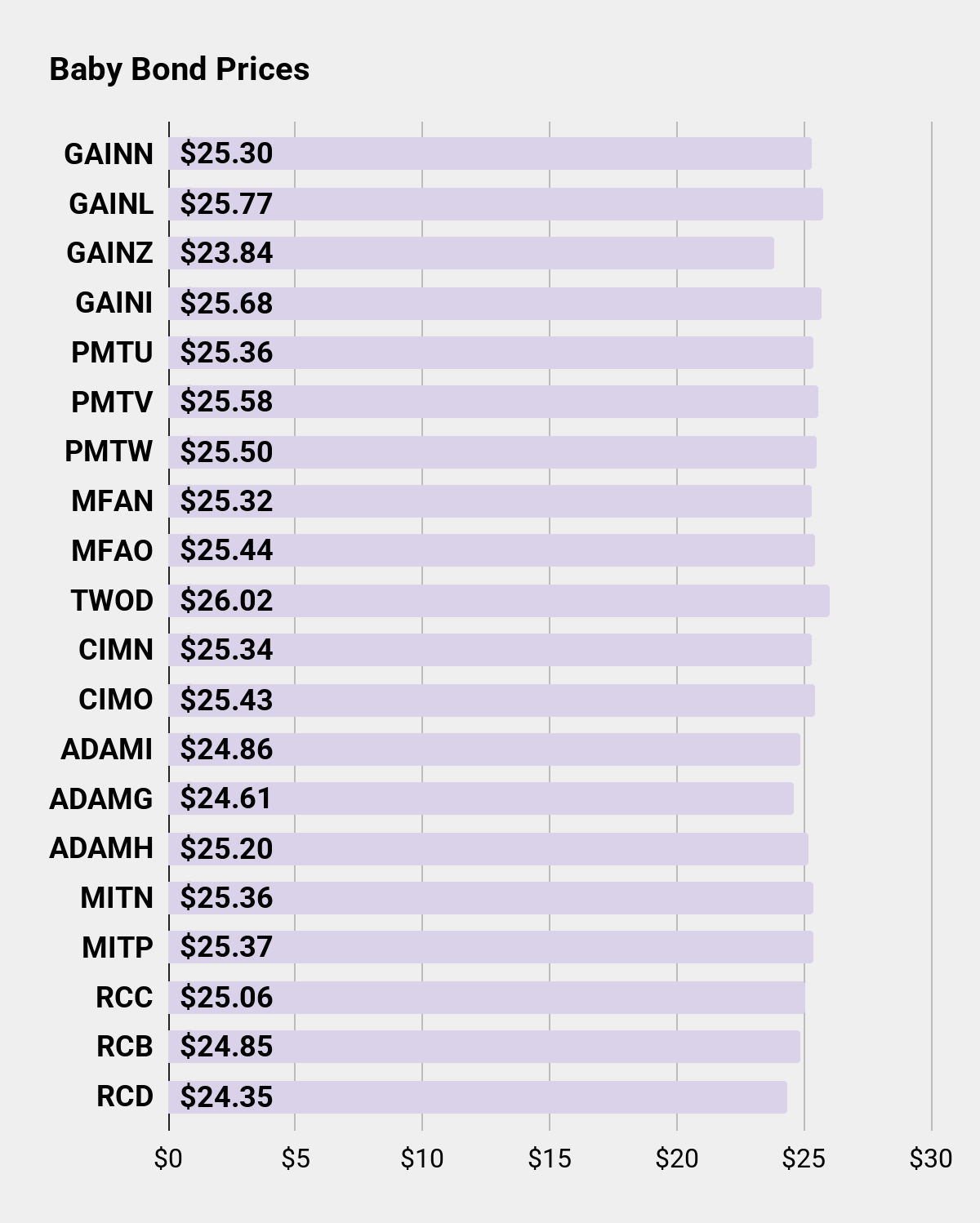 We’re constantly working on providing new updated estimates for BV (book value) and NAV (net asset value) in The REIT Forum. However, many investors fail to even compare the trailing values. In this series, we calculate the price-to-trailing BV or NAV for many mortgage REITs and BDCs, as well as providing several metrics on baby bonds and preferred shares. Charts for those things are available near the end of the article.